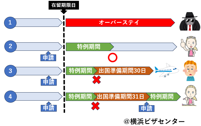 極端な話、例えば期限満了日の前日に申請がなされた場合、その審査が翌日までに完了しなければ在留期限を超過することとなりますし、東京入管などは激込みなので余裕をもって申請しても審査に時間がかかり、そのぶん在留期限超過のケースも多そうです。