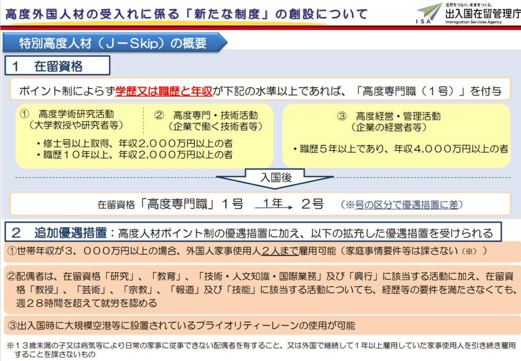 特別高度人材制度 J-Skipの概要